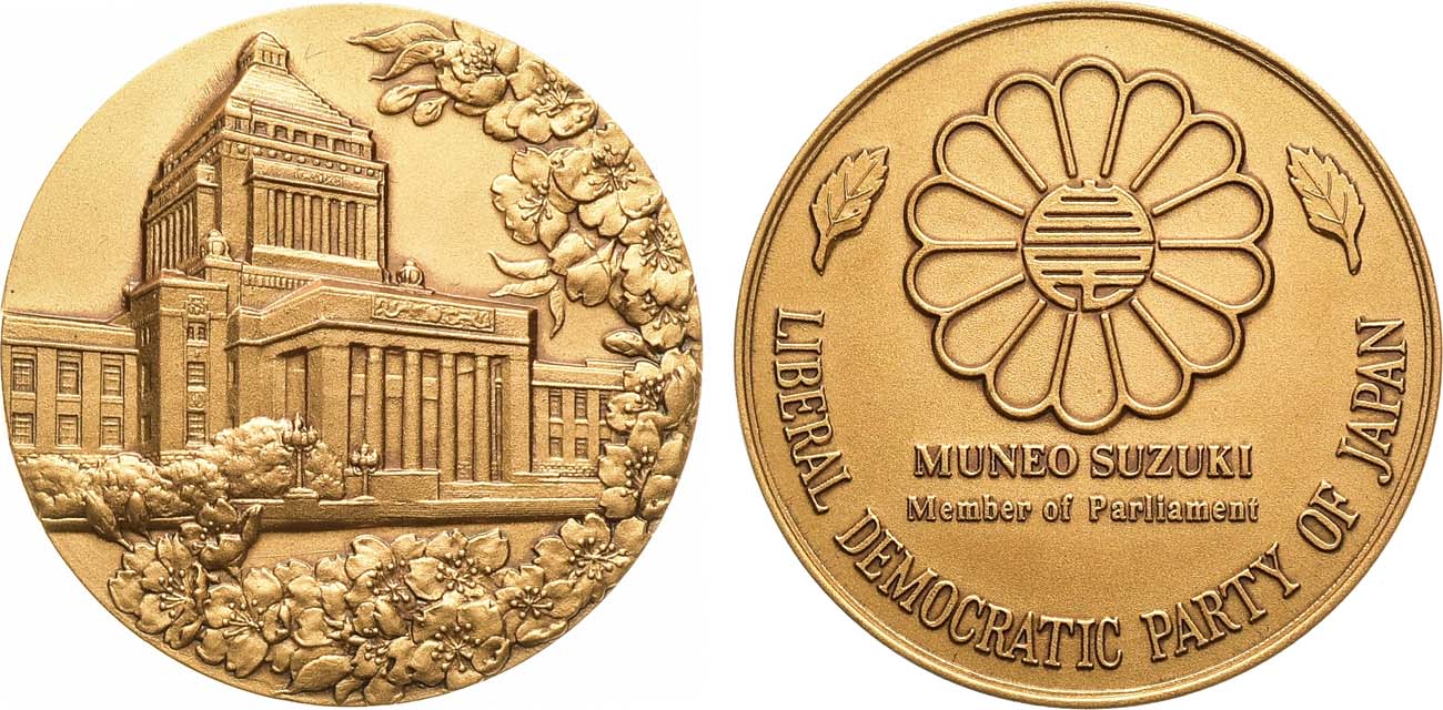 Томпак, золочение. 46,97г. Диаметр 40 мм. Япония. 1970-е. Неизвестная мастерская. UNC.