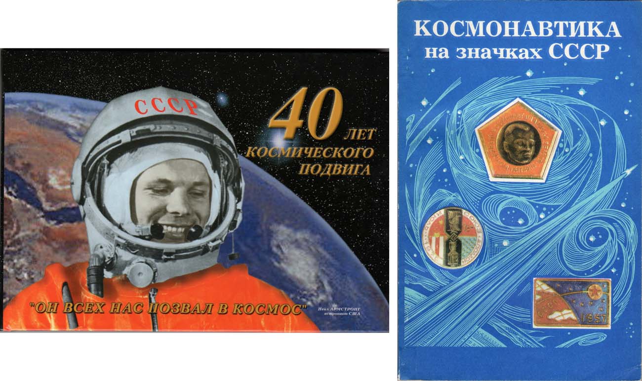 В.Н. Ильинский, В.Е. Кузин, М.Б. Саукке. Космонавтика на знаках СССР 1957-1975 гг. Москва, 1977 г. 144 стр. И.В. Давыдов. 40 лет космического подвига. 2000 г.