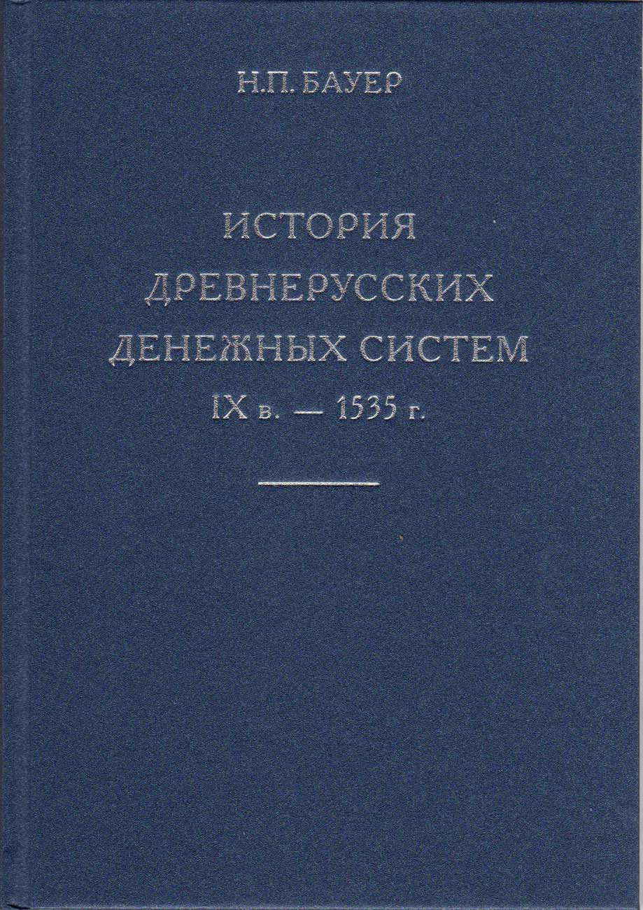 Москва, 2014 г. Издание подготовлено П.Г. Гайдуковым при поддержке РАН, института археологии, института истории материальной культуры и Государственного Эрмитажа. Работа над рукописью была окончена Бауером в 1941 году. Планировавшаяся в качестве докторской диссертации защита этого исследования не состоялась, а автор погиб в блокадном Ленинграде. В книге излагается история зарождения и развития денежно-весовых систем средневековой Руси за 700 лет. Не утратила своей актуальности за прошедшее с момента написания время.