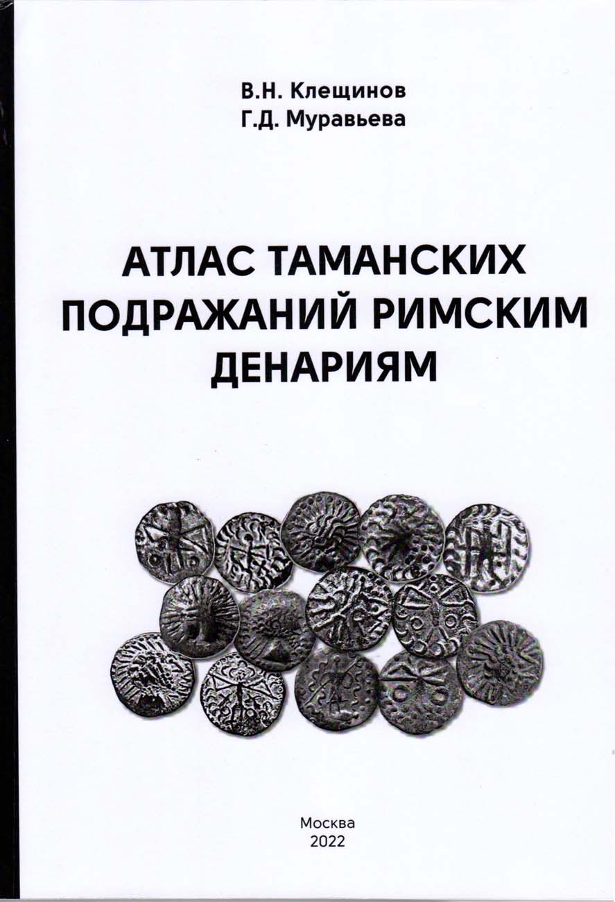 Москва, 2022 г. 332 стр. Тираж 100 экз. В книге представлено наиболее полное описание варварских подражаний римским денариям, находки которых сосредоточены близ Тамани.