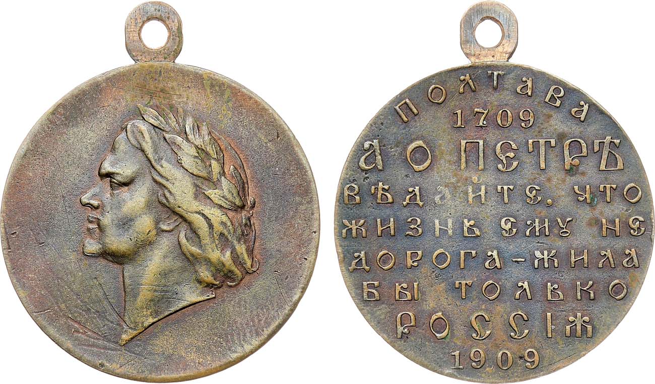 Учреждена 17 июня 1909 г. повелением Императора Николая II. Медалью награждали: а) генералов, штаб и обер-офицеров, гражданских чиновников военного ведомства и нижних чинов войсковых частей, участвовавших в Полтавском бою, и сохранивших ко дню юбилея то название, которое имели в 1709 г., а также генералов, штаб и обер-офицеров, когда-либо служивших в этих частях офицерами, но они должны были приобретать медали за свой счет; б) генералов, штаб и обер-офицеров, гражданских чиновников военного ведомства, нижних чинов и кадет, принимавших участие в параде в городе Полтаве в день празднования юбилея; в) военных и гражданских лиц, бывших официальными представителями на торжествах в городе Полтаве по случаю празднования 200-летия Полтавской битвы; г) всех лиц, принимавших видное участие в разработке вопросов по устройству юбилейных торжеств; д) всех прямых потомков мужского пола генералов и командиров отдельных частей, участвовавших в Полтавском бою. Согласно высочайшему повелению от 8 август