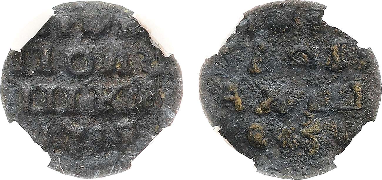 Медь. Кадашевский монетный двор. Реверс: "ВРП" с короной, дата арабская. Уздеников 2417. Отсутствует у Биткина. Дьяков подобна 189, 4001(R0). Brekke 27,63. F DET. (коррозия).