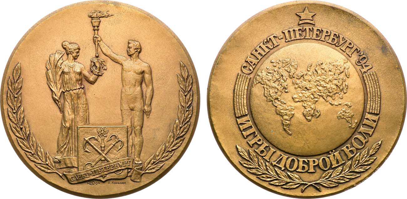 Томпак. 109,96г. Диаметр 60 мм. Ленинградский монетный двор. Медальер А.А. Королюк (внизу под гербом на аверсе: монограмма Ленинградского монетного двора "94", "А.Королюк". UNC.