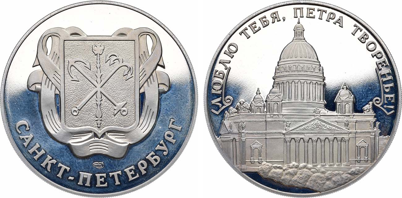 Медно-никелевый сплав. 28,89г. Диаметр 41,5 мм. Санкт-Петербургский монетный двор. Без подписи медальера. PROOF.
