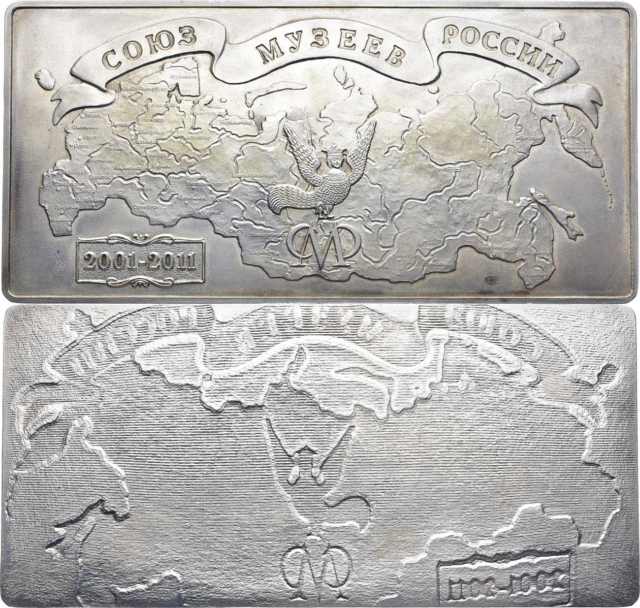 Белый металл. 176,55г. Размер 115х55 мм. Санкт-Петербургский монетный двор. Без подписи медальера. AU.