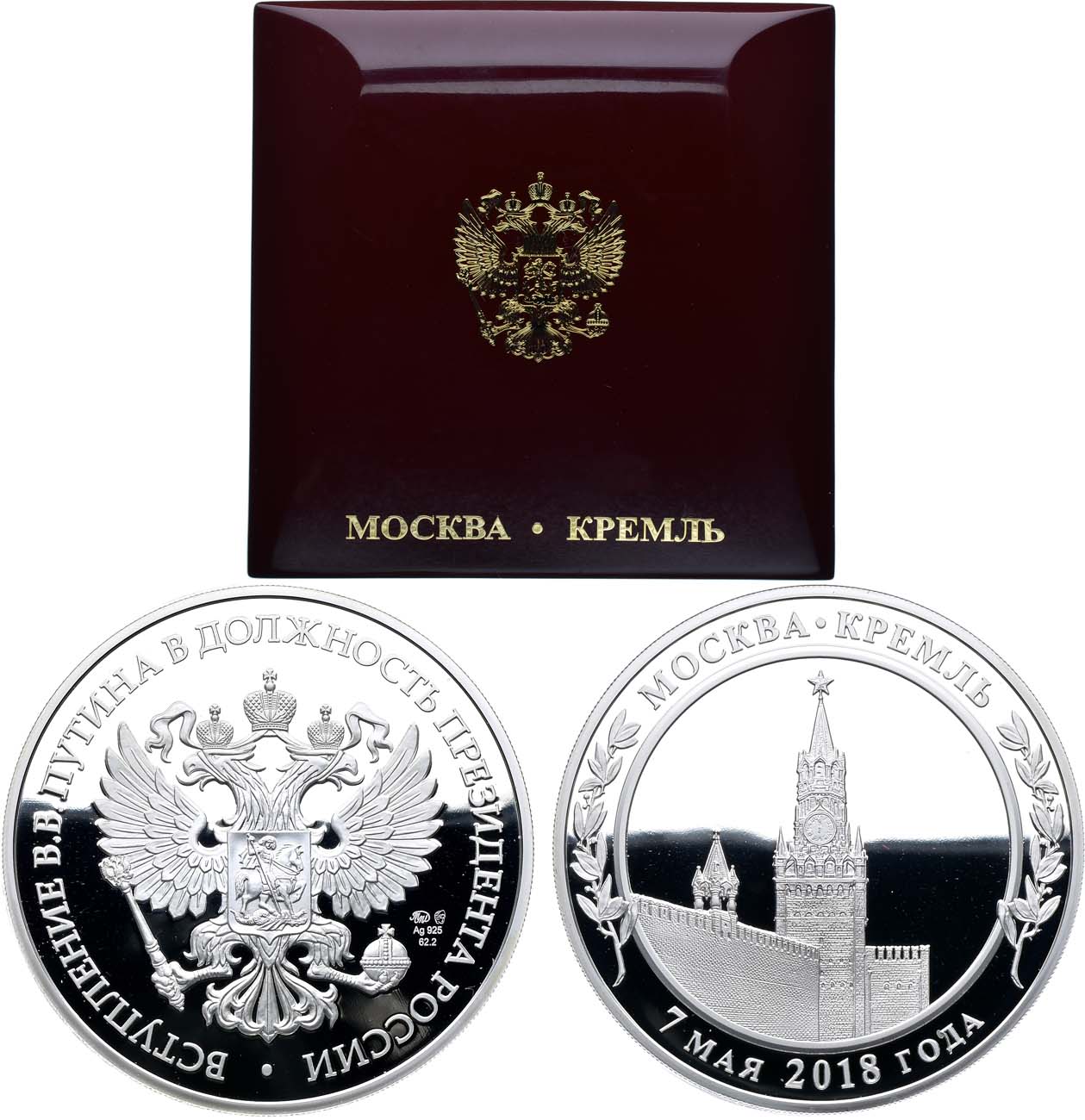 Серебро. 62,2г. Диаметр 50 мм. Московский монетный двор. Гурт: ребристый с шагом 3 мм. Клейма: "ММД, голова девушки в кокошнике смотрит вправо ( Ag-925 / 62,2 г)". Тираж 1750 экз. PROOF.