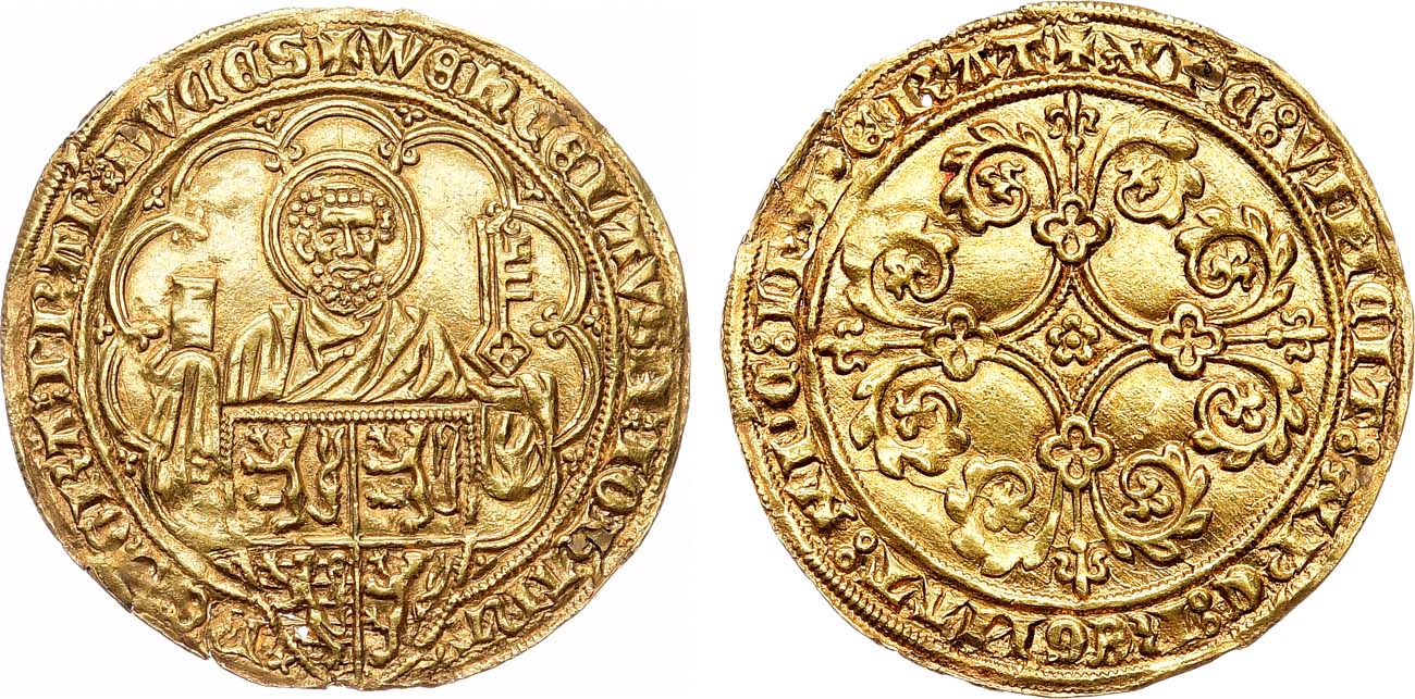 Золото. 4,03г. Лёвен. Аверс: "+ WEnCELAVSx Zx IOh'AnAx - x DEIx GRAx BRAB'x DVCES", (Венцель и Жанна, милостью Божией, герцоги Брабантские). AU.