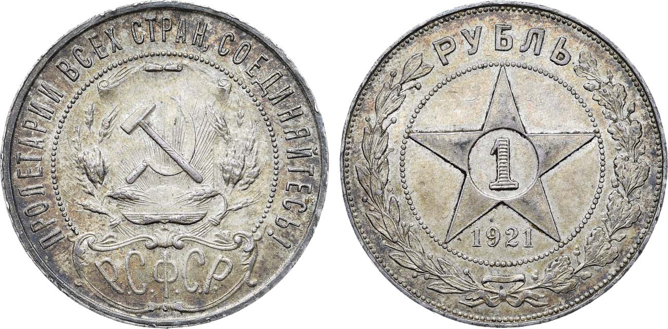 Более редкая штемпельная разновидность рубля 1921 года.