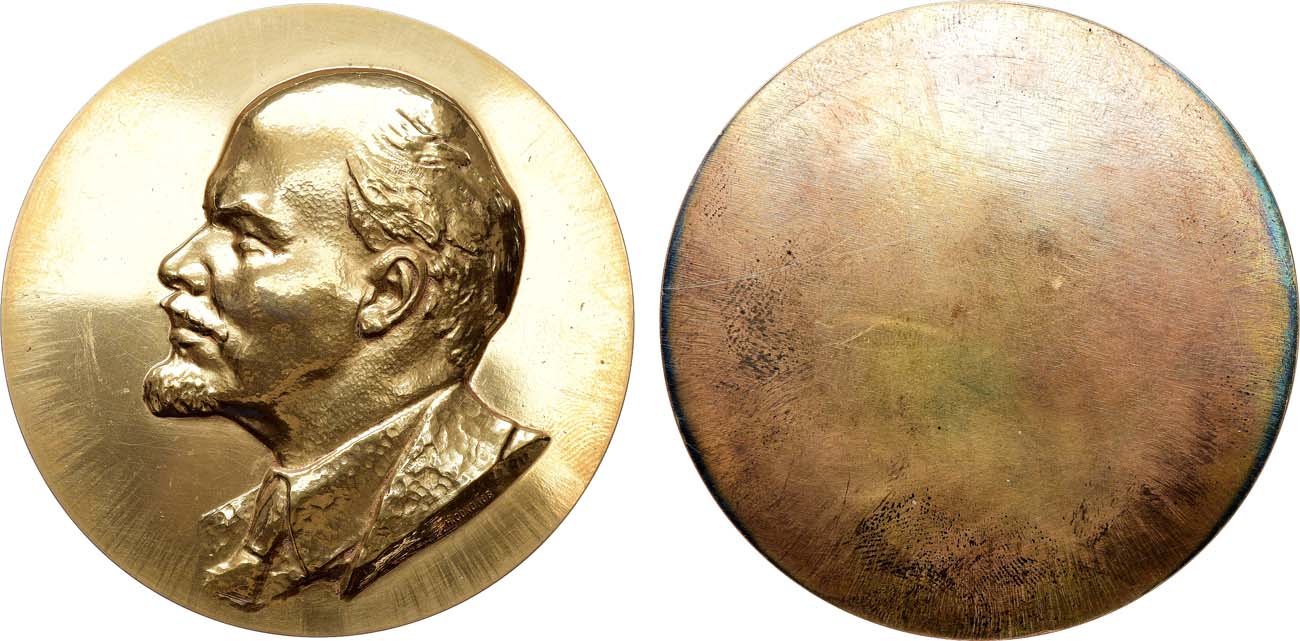 Томпак, золочение. 134,52г. Диаметр 65 мм. Ленинградский монетный двор. Медальер Н.А. Соколов (аверс — на обрезе изображения: "Н.СОКОЛОВ"). Аверс - Шкурко, Салыков 190. MS 64.