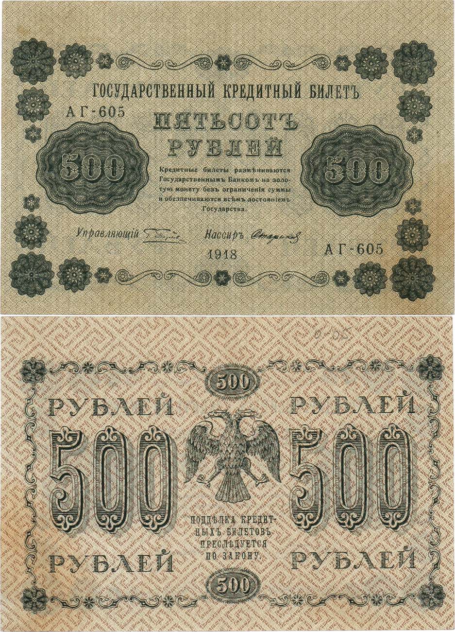 Государственные Кредитные Билеты образца 1918 г. выпущены на основании декретов СНК РСФСР от 15 мая 1919 г и 21 октября 1919 г. В обращении до 1922 г.