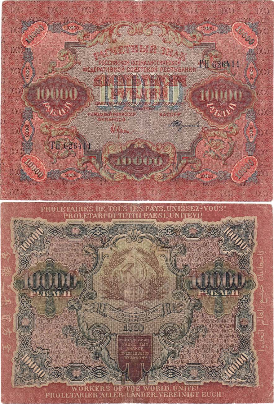 Серия ГН №626411. Подписи: Главный Комиссар Финансов Н. Крестинский. Кассир Федулеев. Водяной знак: Светлые 6-ти лучевые звёзды. ZG2 №2.5.13. VF.