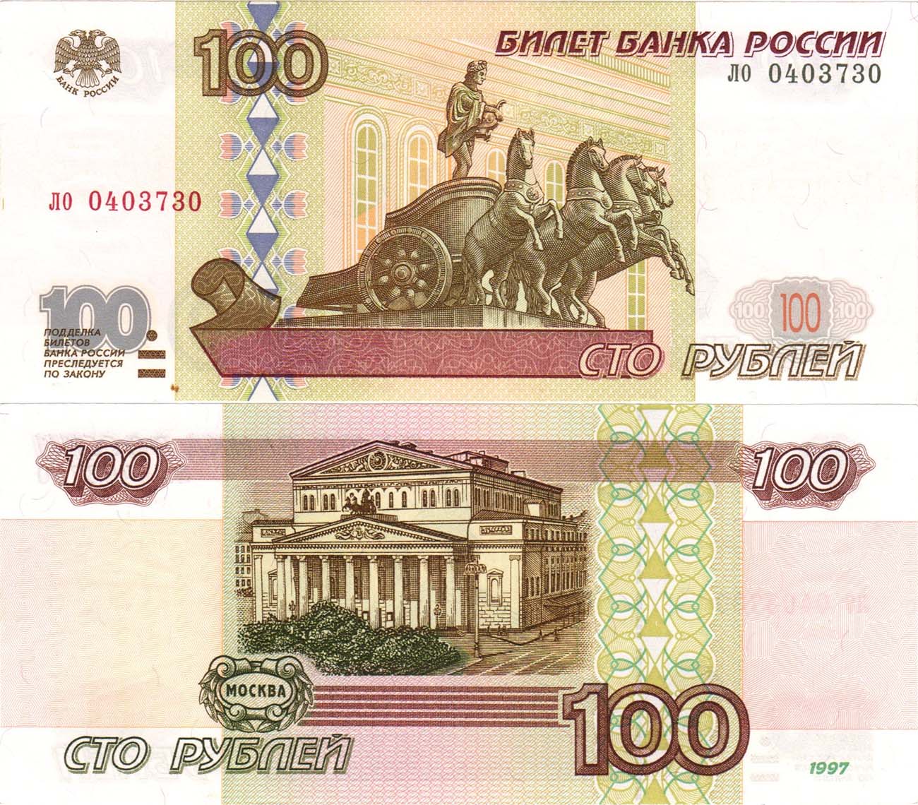 Серия ло 0403730. Без модификации. С жёлтой окантовкой. ZG2№3.5.4. Сергеев 21а. UNC (пресс).