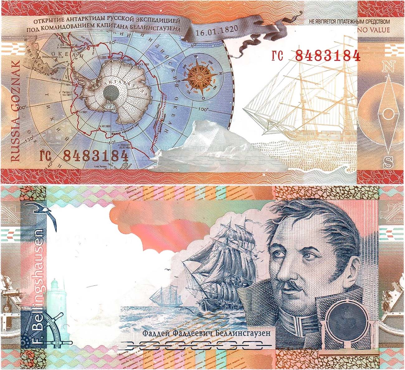 Серия гс №8483184. На оборотной стороне корабль без парусов. UNC (пресс).