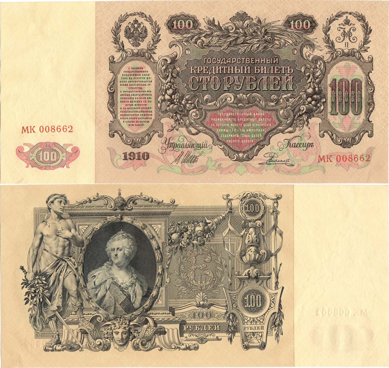 Серия МК №008662. Управляющий: И.П. Шипов, кассир: Родионов. Выпуск Советского Правительства (1917-1921). Кардаков №I.1.713. ZG2 №1.17.27. aUNC.