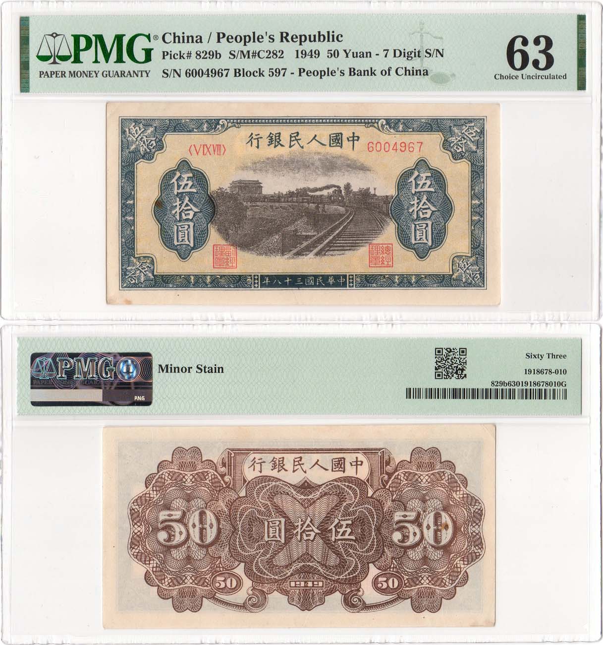 Серия 6004967 (Семизначная). Блок 597. Народный банк Китая. Pick 829b. 63 Choice Uncirculated.