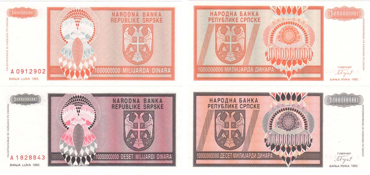 Сербская Краина. 10 миллиардов динаров 1993 года. Лука. Pick R19. UNC. Сербская Краина. 1 миллиард динаров 1993 года. Лука. Pick R17. UNC. UNC (пресс).