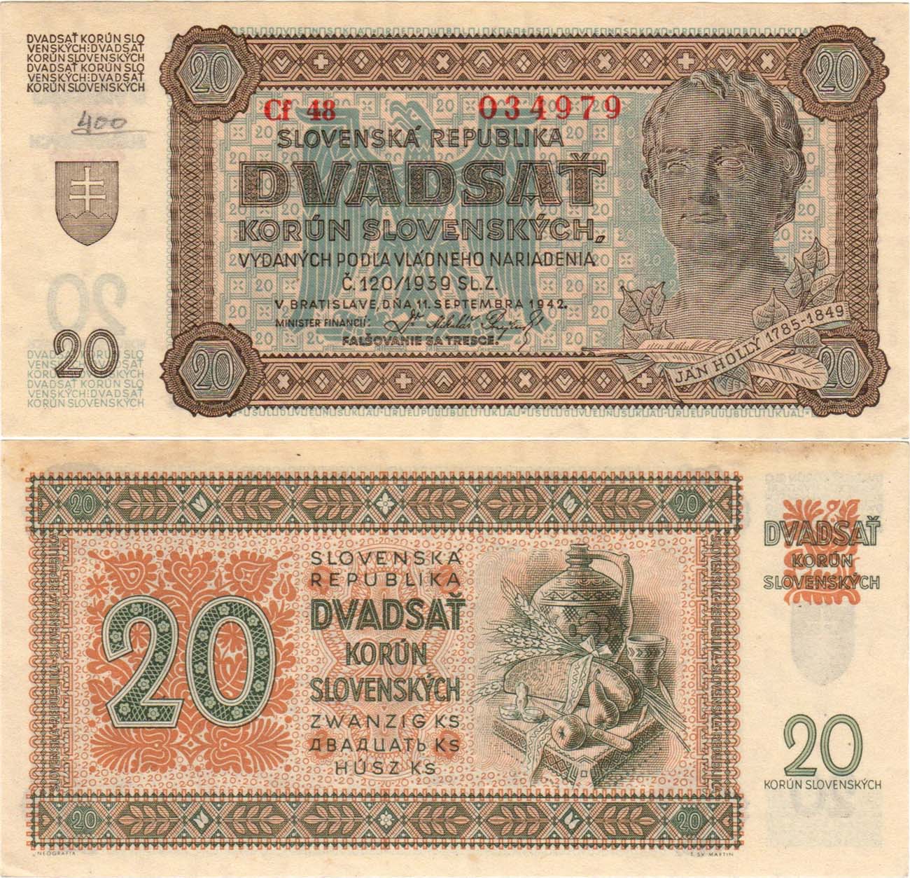 Серия Cf 48 №034979. Pick 7. AU/UNC.