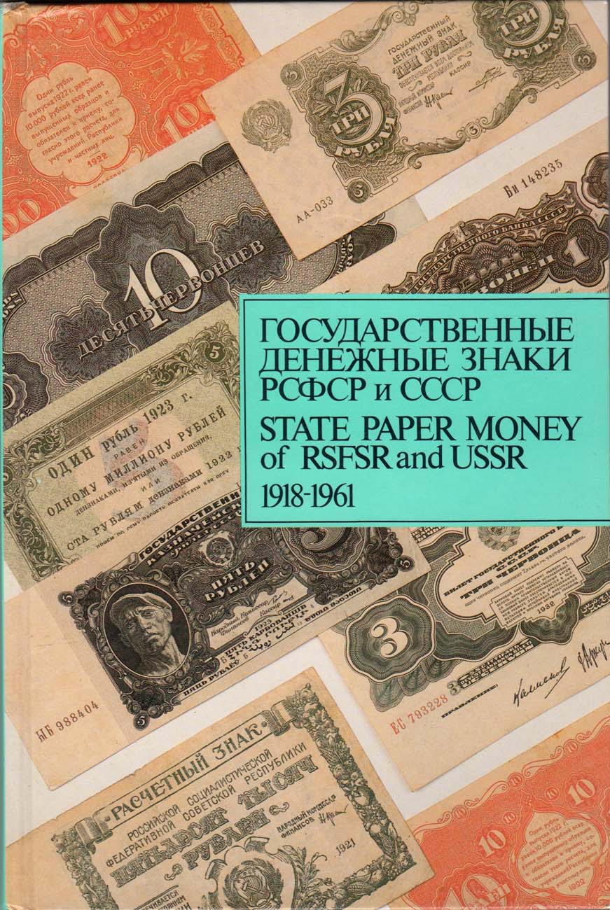 Москва, 1989 г. 212 стр. На рус. и англ.. языках. В книге систематизированы и описаны советские денежные знаки государственных выпусков 1918–1961 годов. Материал каталога изложен в четырёх разделах: суррогаты 1918 года, расчётные знаки 1919–1921 годов, период подготовки и проведения денежной реформы 1922–1924 годов, а также знаки 1924–1961 годов. Особое внимание уделено купонам процентных бумаг дооктябрьского периода.