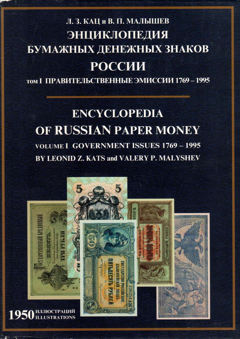 СПБ, 1998 г. 608 стр. Содержит сведения более чем о 5500 денежных знаках, эмитированных 116 центральными, региональными и войсковыми правительствами (приведена краткая информация по истории этих правительств), а также сведения по оккупационным государственным денежным выпускам. Впервые в бонистической литературе подробно разработаны разделы, касающиеся ценных бумаг и их купонов, имевших денежное обращение в Российской Империи, при Временном правительстве Свободной России и в РСФСР, выпусков чеков СССР и т.п. Цены (в USD) приведены в зависимости от состояния материала в соответствии с мировыми стандартами. По количеству иллюстративного материала настоящий каталог превосходит все предыдущие издания по бонистике. Большая часть иллюстраций публикуются впервые.