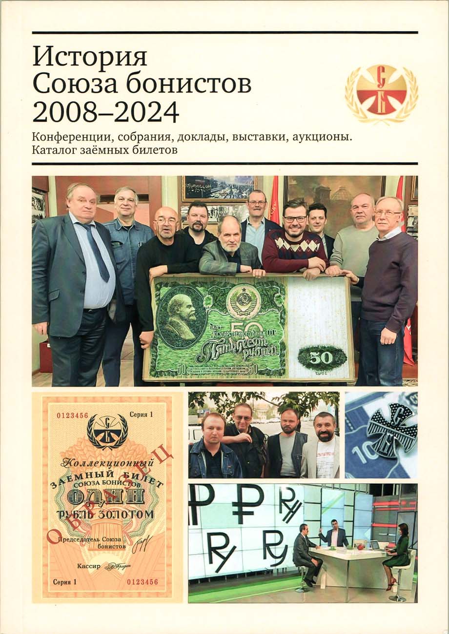 Москва, 2025 г. 288 стр. Тираж 200 экз. Автор-составитель О.А. Пахмутов. В книге собрана история российского Союза бонистов с момента его создания и до 2024 года. Книга содержит огромное количество фотографий с конференций, заседаний, аукционов, выставок и других событий Союза.