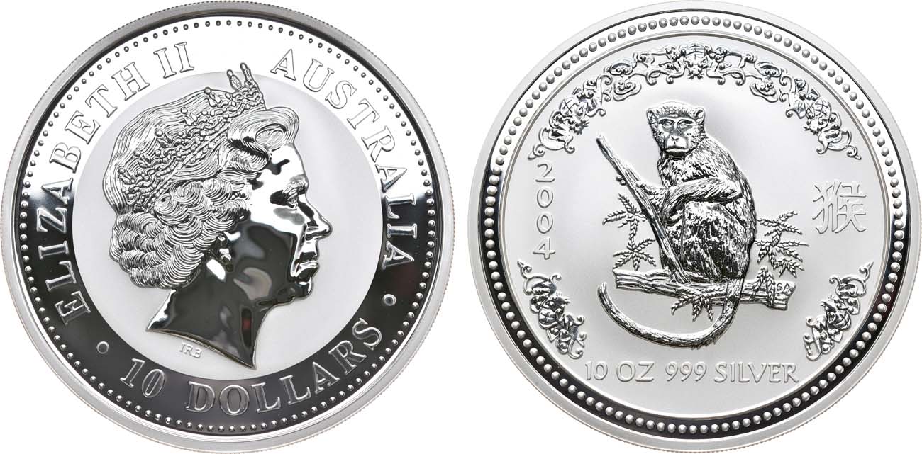 Серебро 999 пробы. 311,1г. Перт. 10 OZ. Гурт рубчатый. (10 унций). PROOF.
