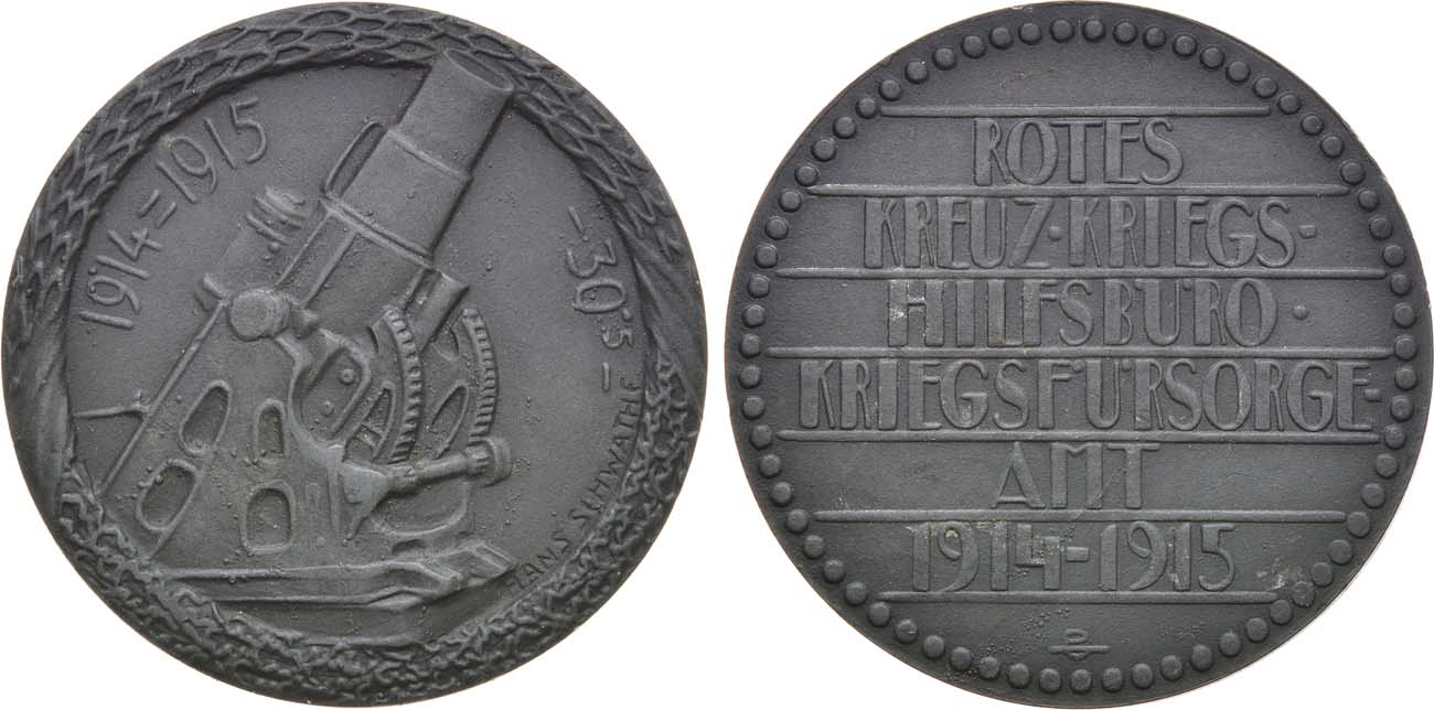 Цинк. 32,1г. Диаметр 45 мм. Австрия. Медальер Ганс Швате (на аверсе на четыре часа "HANS SCHWATHE"). Аверс: 305-мм гаубица Шкода М11 в лаврово дубовом венке. UNC.