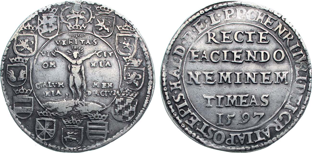 Относится к серии так называемых символических талеров, отсылающих к спорам герцога с некоторыми землевладельческими дворянами. С помощью талера правды герцог хочет выразить, что он чувствует себя оклеветанным истцами. Несмотря на то, что правда все еще так сильно искажена, в конце концов, она все равно восторжествует. На аверсе девиз, что тому, кто действует правильно, нечего бояться.