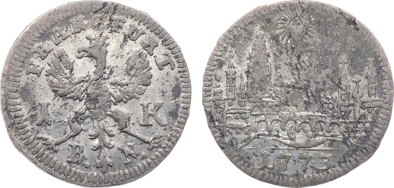 Серебро. 0,62г. Франкфурт-на-Майне. Реверс: изображение города. XF.