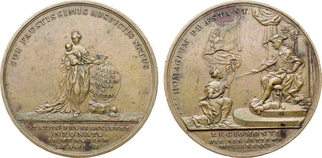 19 сентября 1786 всему весьма славному роду фон Грёбен был пожалован графский титул. С этими событиями и связаны надписи на медали: "SUB FAUSTISSIMUS AUSPICIIS NATUS" (рождённый при счастливейших предзнаменованиях), внизу посвящение новорожденному от Восточной Пруссии, на другой стороне: "HOMAGIUM PRAESTANT" (принесли присягу) "REGIOMONTI" (Кёнигсберг), 19 сентября 1786 г.