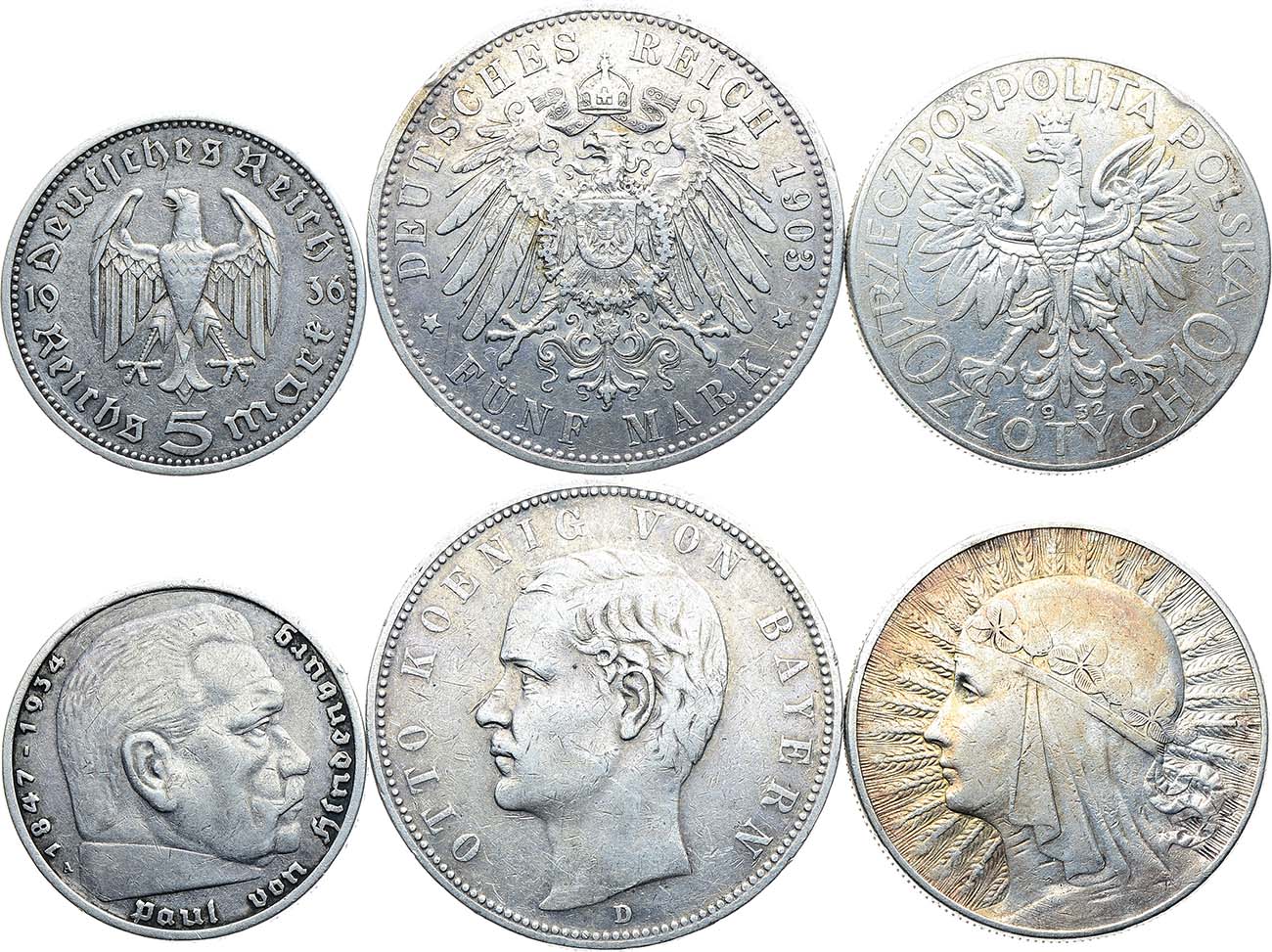 Серебро. Германия. Империя. Королевство Бавария. Король Отто I. 5 марок 1903 года. VF.