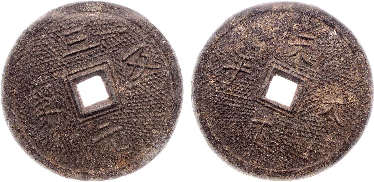 Свинцово-оловянный сплав. 27,3г. Аверс: 三元及第 (Sān Yuán Jí Dì) - "Трое учёных". Реверс: 天下太平 (Tiān Xià Tài Píng) - "Мир в Поднебесной". US 78 (05).