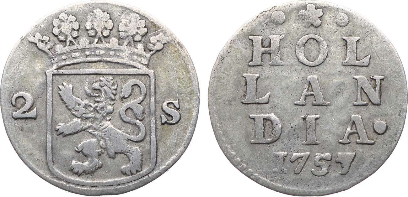 Серебро. 1,68г. Дордрехт. Последняя цифра года "7" перегравирована из "5" на штемпеле. KM 48. XF.