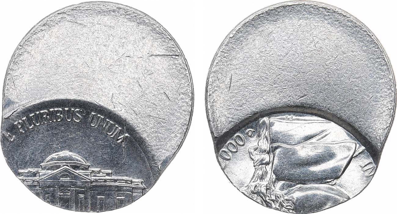 Медно-никелевый сплав. 4,96г. Денвер (D). Брак: значительное смещение заготовки при чеканке. KM 192. UNC.