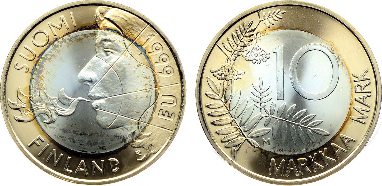 Биметалл, Серебро 925 пробы, Золото 750 пробы. 13,2г. Хельсинки-Вантаа. Тираж 3000 экз. KM 91a. PROOF.