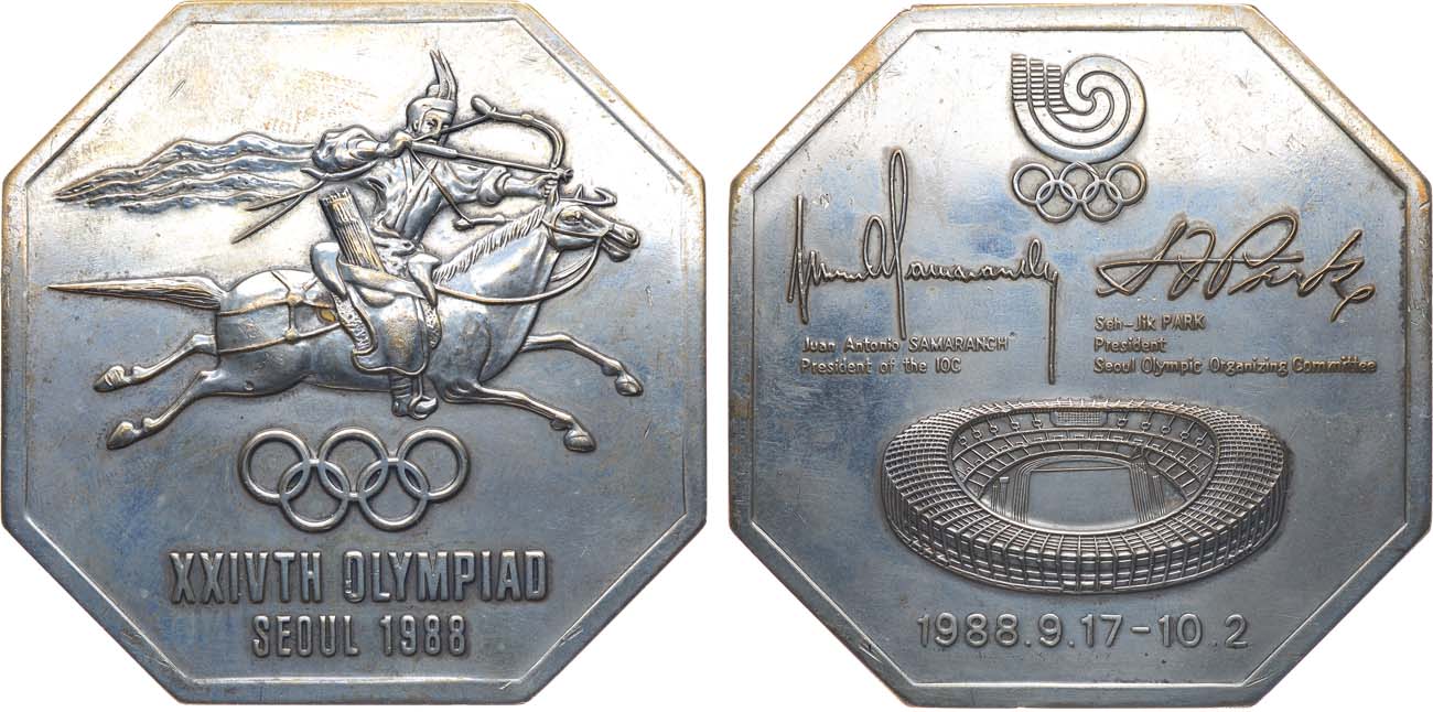 Бронза, серебрение. 166,33г. Размеры 65,1×65,2 мм. Неизвестное производство, 1988 г. Без подписи медальера. AU/UNC.