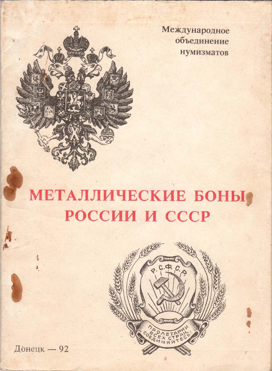 Донецк, 1992 г., 118 стр. Посмертное издание рукописи известного бониста А.В. Тункеля (1907-1976), написанной им еще в 1974 г. Содержит описание более 1500 металлических суррогатов денежных знаков Российской империи и СССР, до настоящего времени является наиболее полным изданием такого рода. Сегодня это единственный каталог металлических бон, на который ссылаются основные аукционные дома России. Интересный, редкий и единственный в своем роде каталог металлических бон и жетонов, выпускавшихся в дореволюционной России и в советский период.