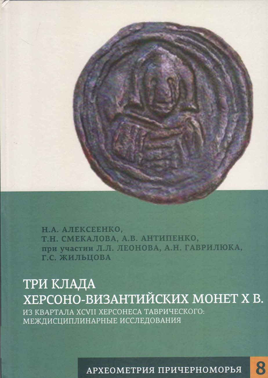 Археометрия Причерноморья. Выпуск 8. СПБ, 2022 г. 128 стр. Тираж 300 экз. Крымский федеральный университет им. В.И. Вернадского. НИЦ Курчатовский институт. Институт археологии Крыма РАН. Городской квартал XCVII Херсонеса Таврического представляет собой исключительный пример нахождения в нем сразу трёх кладов херсоно-византийских монет. Данные кладов подтверждают мнение об активном участии в городском денежном обращении многочисленных серий местных монет Х столетия, куда попадают иногда и экземпляры выпусков конца IX – рубежа IX/X вв. С помощью неразрушающей рентгенофлуоресцентной спектроскопии был изучен химический состав сплава более 660 монет. Был также вскрыт и изучен факт влияния химической очистки монет на состав сплава.