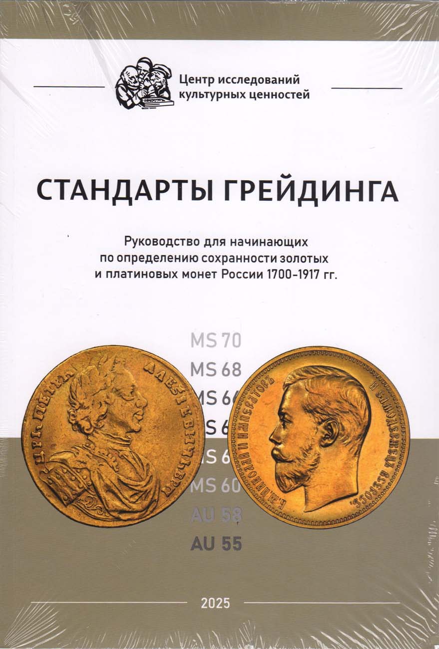 Москва, 2025 г. Книга рассказывает о правилах, способах и критериях определения сохранности монет по 70-и бальной шкале Шелдона. Помимо описаний сохранности и фотографий непосредственно золотых и платиновых монет, в издании много полезной информации: какие бывают details, браки монетного двора, хранение и обращение с монетами, особое качество чекана proof.