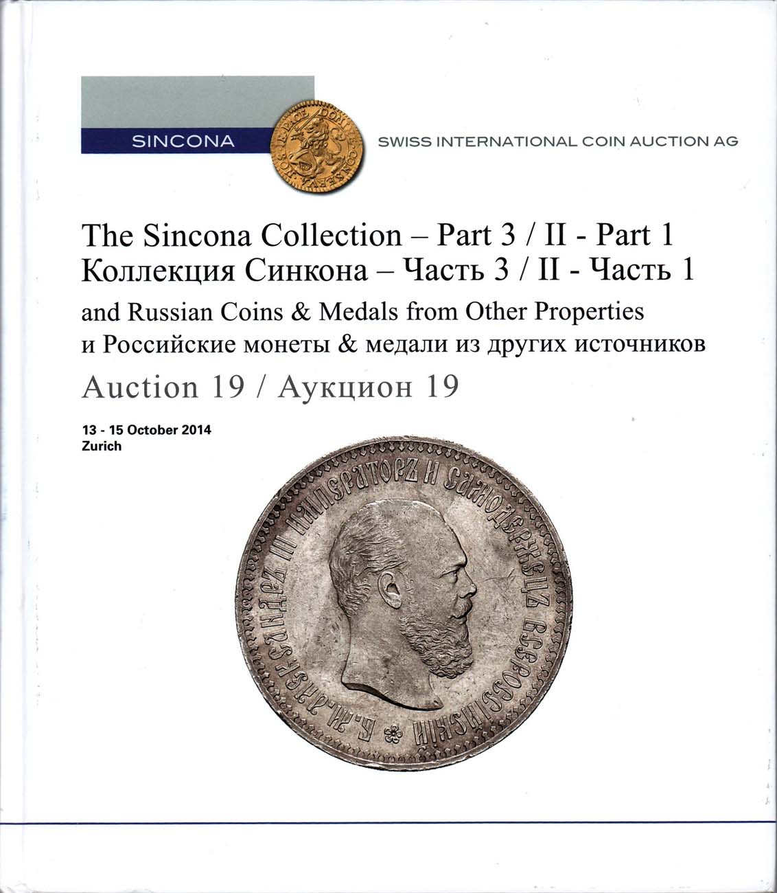 13-15 октября 2014 г., Цюрих. 1311 лотов. Третья часть продажи самой значимой коллекции русских монет в XXI веке. Содержит большое количество монет, которые ранее не появлялись на аукционах.