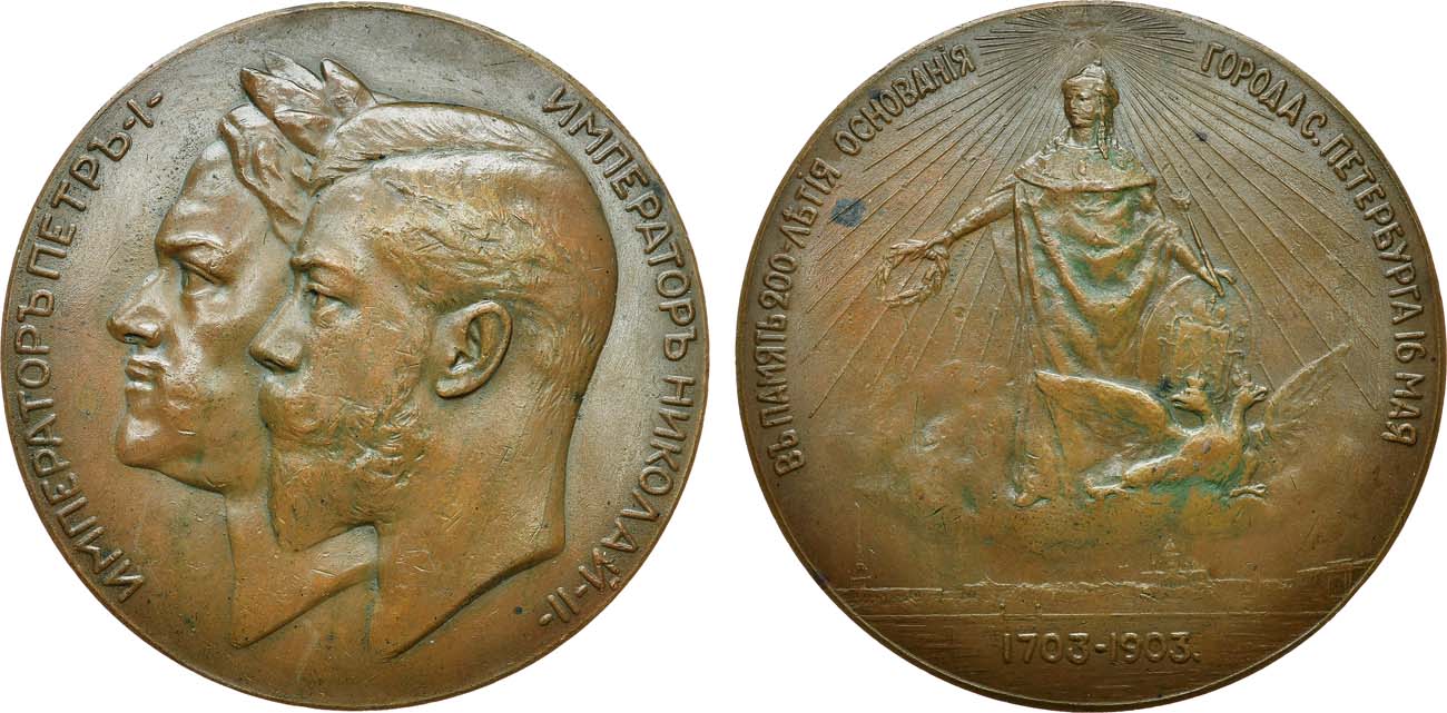 Бронза. 127,18г. Диаметр 64 мм. Санкт-Петербургский монетный двор. Медальер А.Ф. Васютинский (без подписи). Смирнов 1269. Дьяков 1370.1(R0). AU.