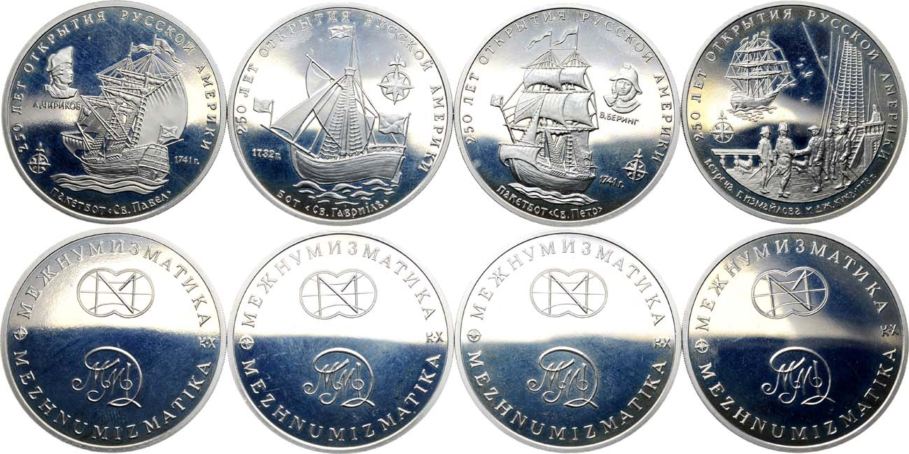 Медно-никелевый сплав белого цвета. Россия. Жетон 1991 года. ММД. Медно-никелевый сплав. 22,99 г. Пакетбот "Святой Павел". Тираж 2000 экз. BU. Россия. Жетон 1991 года. ММД. Медно-никелевый сплав. 22,91 г. Пакетбот "Святой Пётр". Тираж 2000 экз. BU. Россия. Жетон 1991 года. ММД. Медно-никелевый сплав. 22,71 г. Встреча Г. Измайлова и Дж. Кука. Тираж 2000 экз. BU. Россия. Жетон 1991 года. ММД. Медно-никелевый сплав. 22,99 г. Бот "Святой Гавриил". Тираж 2000 экз. BU BU.