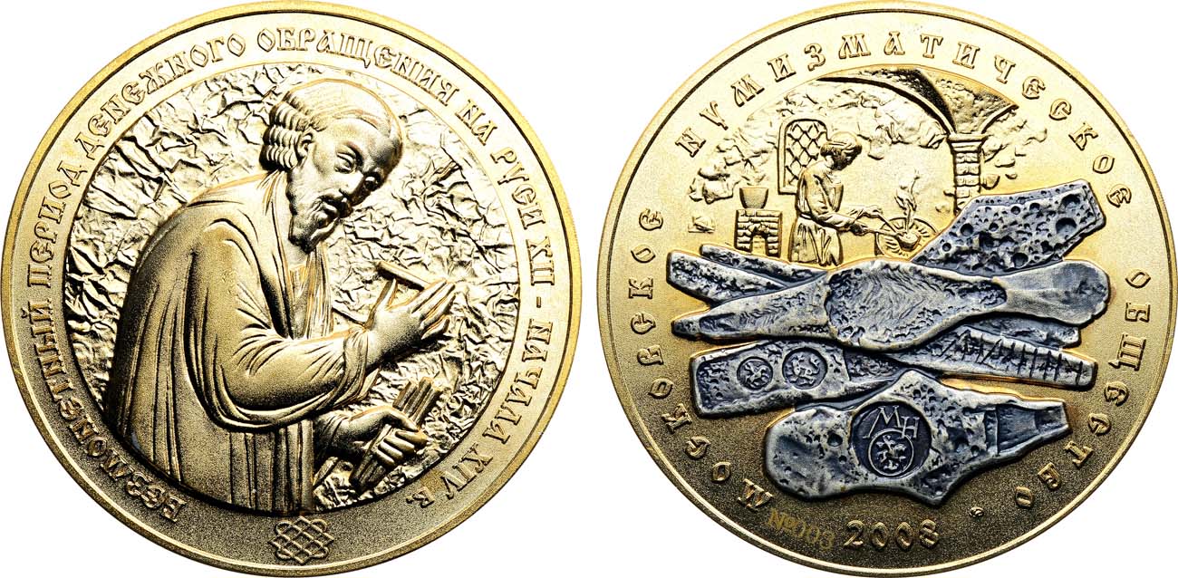 Томпак, серебрение. 168,64г. Диаметр 70 мм. Московский монетный двор. Медальер И.И. Копыткин (без подписи). На реверсе №003. Тираж 6 экз! (выборочное серебрение). Щетинин 60, 3-D. UNC.