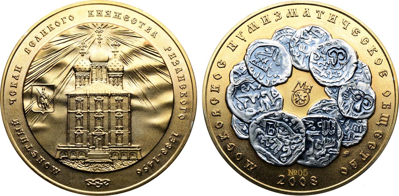 Томпак, серебрение. 176,07г. Диаметр 70 мм. Московский монетный двор. Медальер А. С Карташов (без подписи). На реверсе №5. Тираж 6 экз! (выборочное серебрение). Щетинин 81, 6-D. UNC.