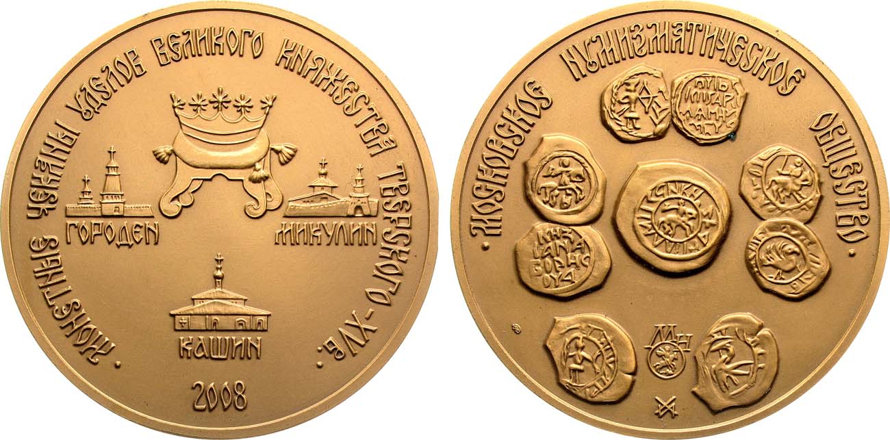 Медаль 2008 года. Московское Нумизматическое Общество (МНО). Монетные чеканы уделов Великого княжества Тверского XV в.