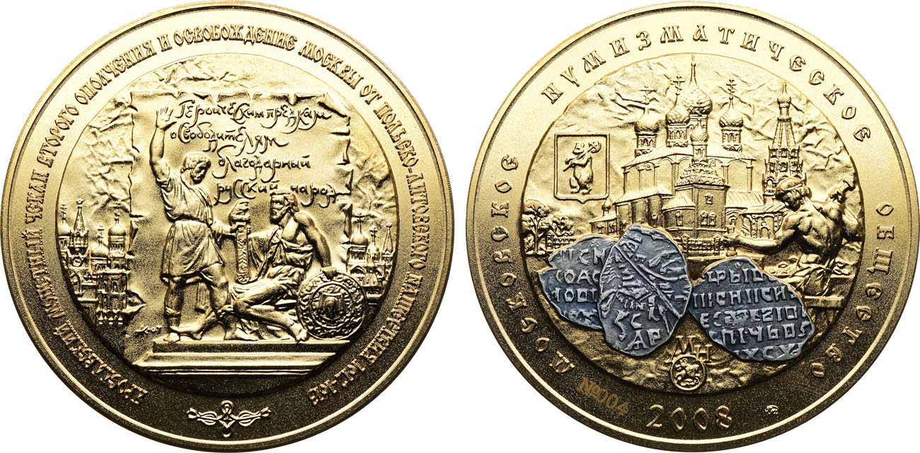 Томпак, серебрение. 173,01г. Диаметр 70 мм. Московский монетный двор. Медальер А.С. Карташов (без подписи). На реверсе №004. Тираж 6 экз! (выборочное серебрение). Щетинин 135, 15-D. UNC.