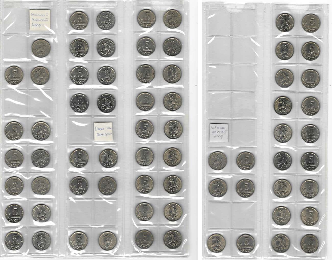 Сталь плакированная медно-никелевым сплавом. 5 копеек 1997 года ММД, 1998 ММД (2 шт.), 2001 ММД (2 шт.), 2002 ММД (2 шт.), 2003 ММД (2 шт.), 2004 ММД (2 шт.), 2005 ММД (2 шт.), 2006 ММД (2 шт.), 2007 ММД (2 шт.), 2008 ММД (2 шт.). 5 копеек 1997 года СПМД (4 шт.), 1998 СПМД (4 шт.), 2000 СПМД (4 шт.), 2001 СПМД (4 шт.), 2002 СПМД (4 шт.), 2003 СПМД (4 шт.), 2004 СПМД (4 шт.), 2005 СПМД (4 шт.), 2006 СПМД (4 шт.), 2007 СПМД (4 шт.), 2008 СПМД (4 шт.), 2009 СПМД (4 шт.). KM Y# 601. UNC.