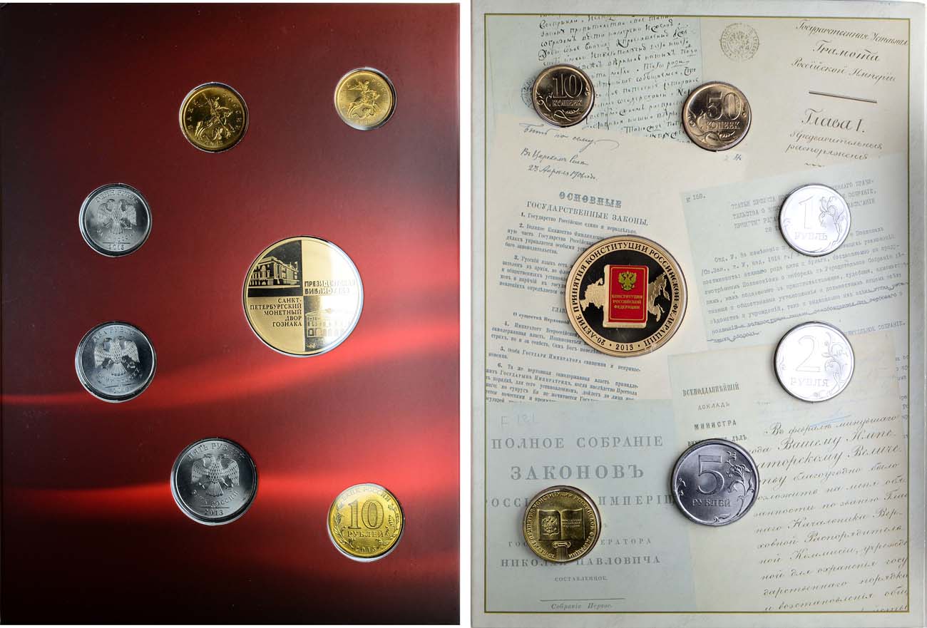 Санкт-Петербургский монетный двор. Включает: памятный жетон СПМД с цветной эмалью и 6 монет: 10, 50 копеек, 1, 2, 5, 10 рублей. UNC.
