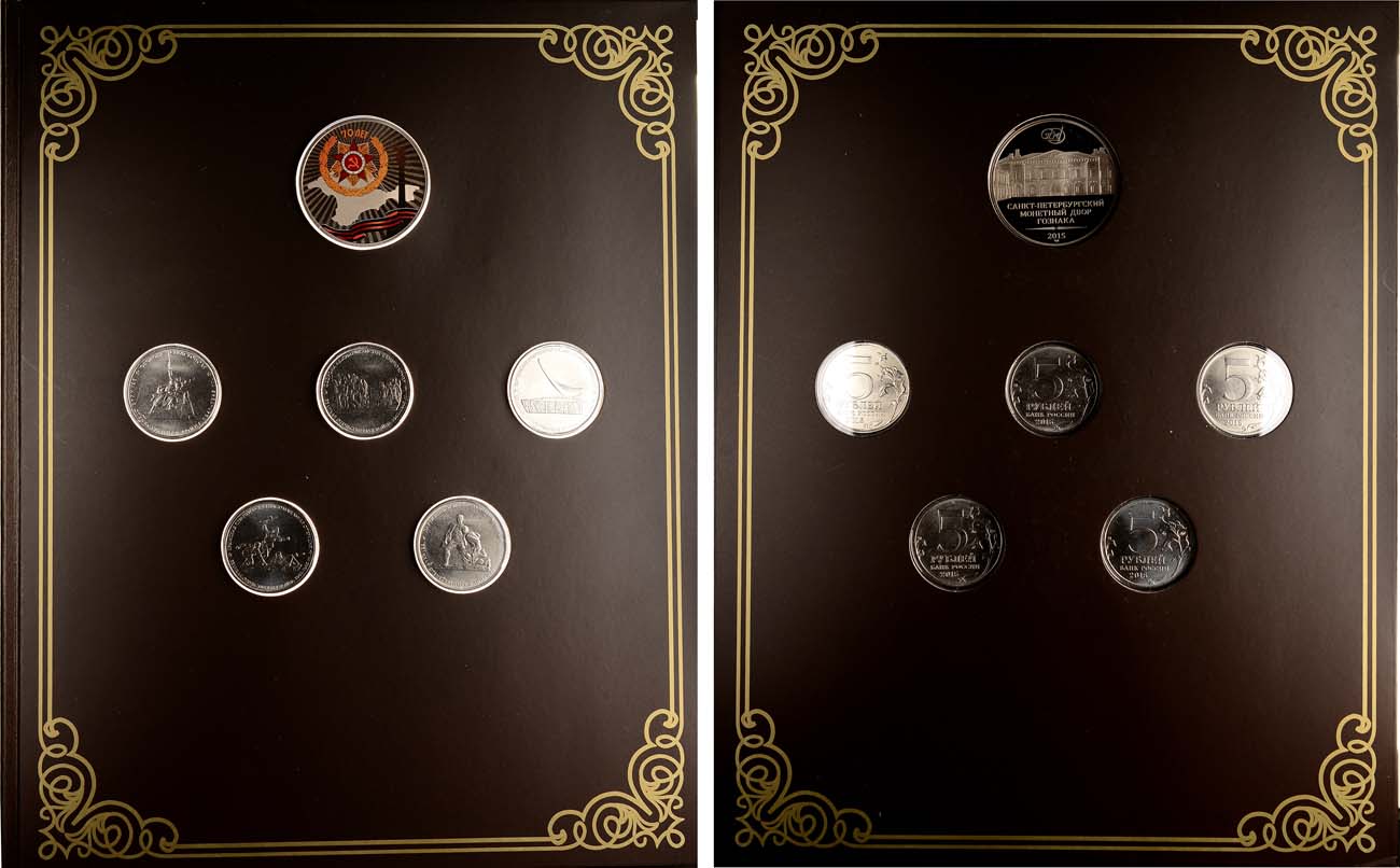 Сталь плакированная никелем. 5 рублей 2015 года. ММД. Оборона Севастополя. KM 126. BU. 5 рублей 2015 года. ММД. Оборона Аджимушкайских каменоломен. KM 127. BU. 5 рублей 2015 года. ММД. Керченско-Эльтигенская десантная операция. KM 129. BU. 5 рублей 2015 года. ММД. Крымская стратегическая наступательная операция. KM 128. BU. 5 рублей 2015 года. ММД. Партизаны и подпольщики Крыма. KM 125. BU. Жетон 2015 года. СПМД. 70 лет победы в ВОВ. Цветная эмаль. BU. BU.
