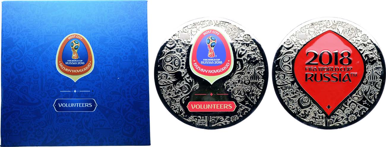 Медаль вложена в оригинальный футляр с символикой чемпионата. Чемпионат мира по футболу 2018 года — 21-й чемпионат мира по футболу ФИФА, финальная часть которого прошла в России с 14 июня по 15 июля 2018 года. Россия в первый раз в своей истории стала страной-хозяйкой мирового чемпионата по футболу, кроме того, он впервые проводился в Восточной Европе. Также в первый раз мундиаль проходил на территории сразу двух частей света — Европы и Азии. Турнир прошёл на 12 стадионах в 11 российских городах.