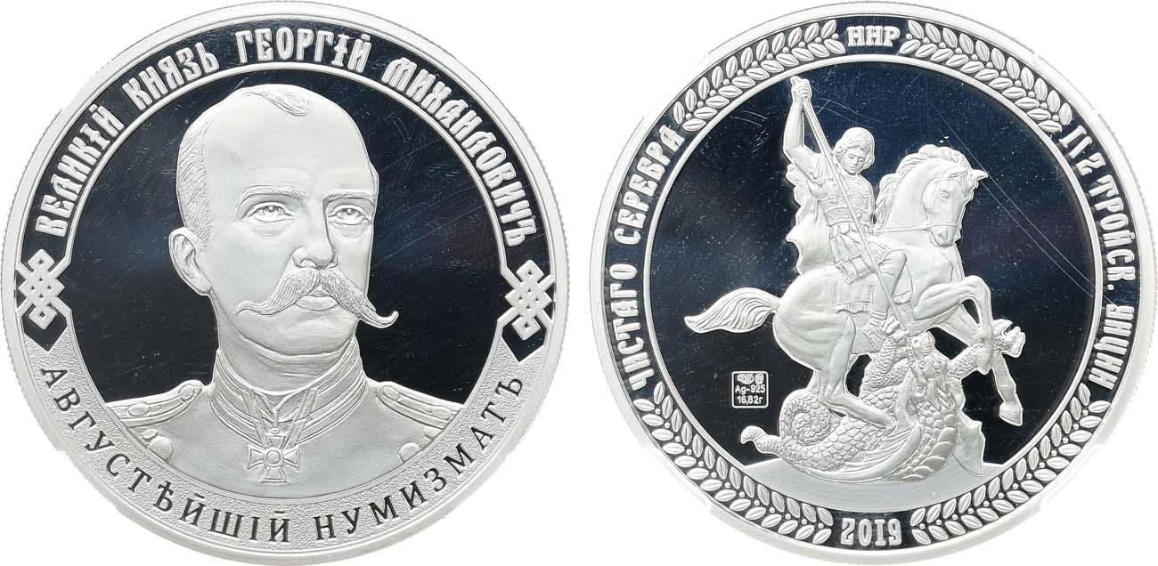 Серебро. Диаметр 33 мм. Санкт-Петербургский монетный двор. Аверс: пробирной клеймо, монограмма "СПМД", "Ag-925" и "16,82 г". Гурт рубчатый. Экземпляр №040. Тираж 500 экз. PF 70.